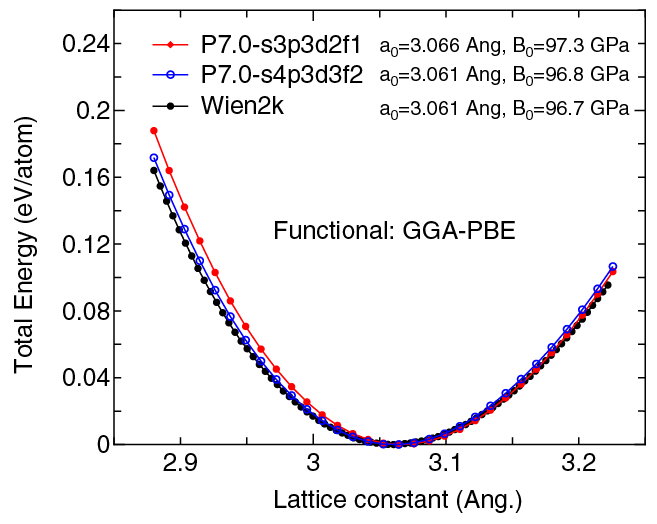 the Murnaghan equation of state. The difference between P7.0-s3p3d2f1 and P7.0-s4p3d3f2