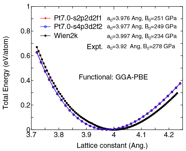 the Murnaghan equation of state. The difference between Pt7.0-s2p2d2f1 and Pt7.0-s4p3d2f2